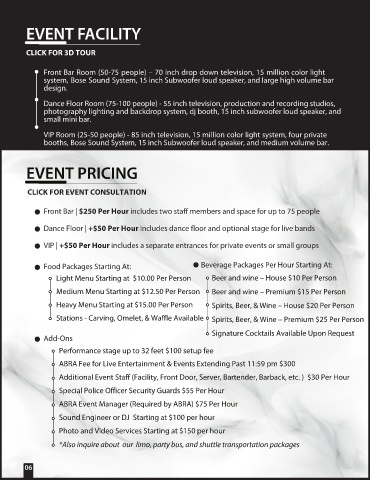 Food Packages Starting At: Beverage Packages Per Hour Starting At: