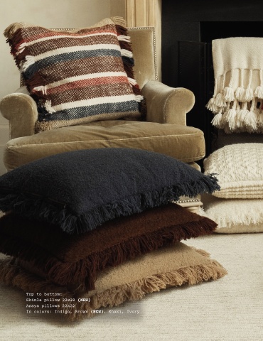 Top to bottom: Shimla pillow 22x22 (NEW) Anaya pillows 22x22 In colors: Indigo, Brown (NEW), Khaki, Ivory